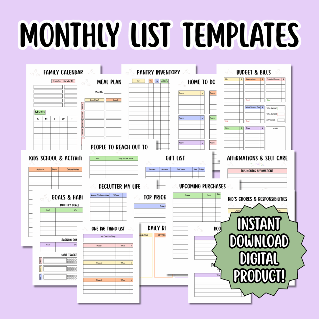 Tackle a drawer, closet, or toy bin. Small wins build momentum without overwhelm. BONUS: Involve your kids in the de-cluttering adventure with this Room Cleaning Checklist and De-Clutter Challenge for kids!